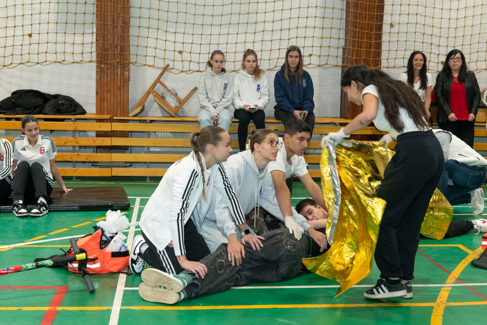 Csütörtökön az oktatás a Széna Téri Általános Iskolában folytatódott, ahol a Vöröskereszt bugátos tagjai a felső tagozatosoknak tanították az újraélesztést, valamint a MÁV Előre Foxconn csapattagjainak.