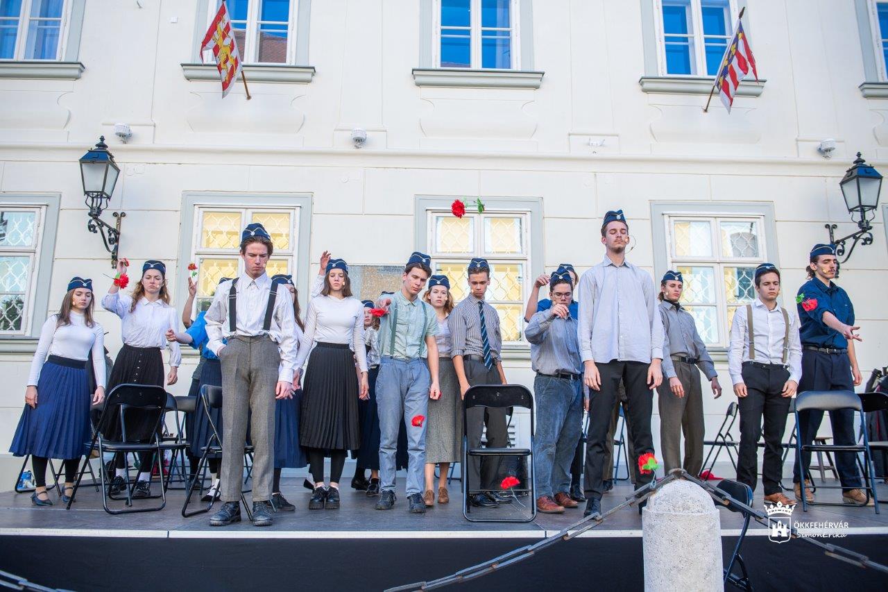 A város hagyományaihoz hűen idén is fiatalok idézték meg a forradalom sorsfordító napjait és a székesfehérvári eseményeket, azokat a személyeket, akik életüket adták a szabadságért és azokat a jelentős helyeket, ahol ma is nap mint nap járunk, mint például a Városház tér, amely fontos helyszíne volt a szabadságharcnak.