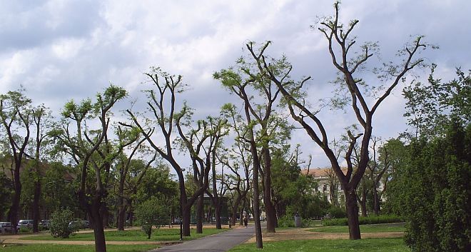 A hosszú évek során több méteresre nőtt vázágak nagy részén a korábbi évek áglehasadásai miatt, nagymértékű korhadt felületek alakultak ki. A másodlagos kórokozók megjelenése után tovább romlik a fák állapota, így jelentős a gombás betegség aránya is. A korhadás és a gombás fertőzöttség elhatalmasodása következtében statikailag meggyengült fák már kisebb erejű szél esetén is balesetveszélyt jelentettek az arra közlekedők számára.