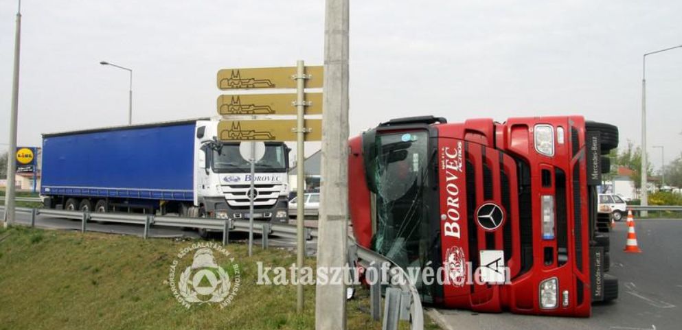 A szerelvény 24 tonna papírhulladékot szállított és elzárta a Farkasvermi út irányából érkező behajtó sávot. A baleset következtében szivárgott az üzemanyag, amelyet a tűzoltók megszüntettek, az úttestre folyt gázolajat pedig felitatták. A járművezető könnyű sérülést szenvedett, a mentők kórházba szállították. A műszaki mentést és ezzel együtt a forgalmi akadály megszüntetését csak a rakomány átrakodását követően lehetett megkezdeni, amelyről a szállítmányozó cég gondoskodott. A rendőrség forgalomirányítása mellett a rakodás a délelőtti órákban is folyamatban volt.