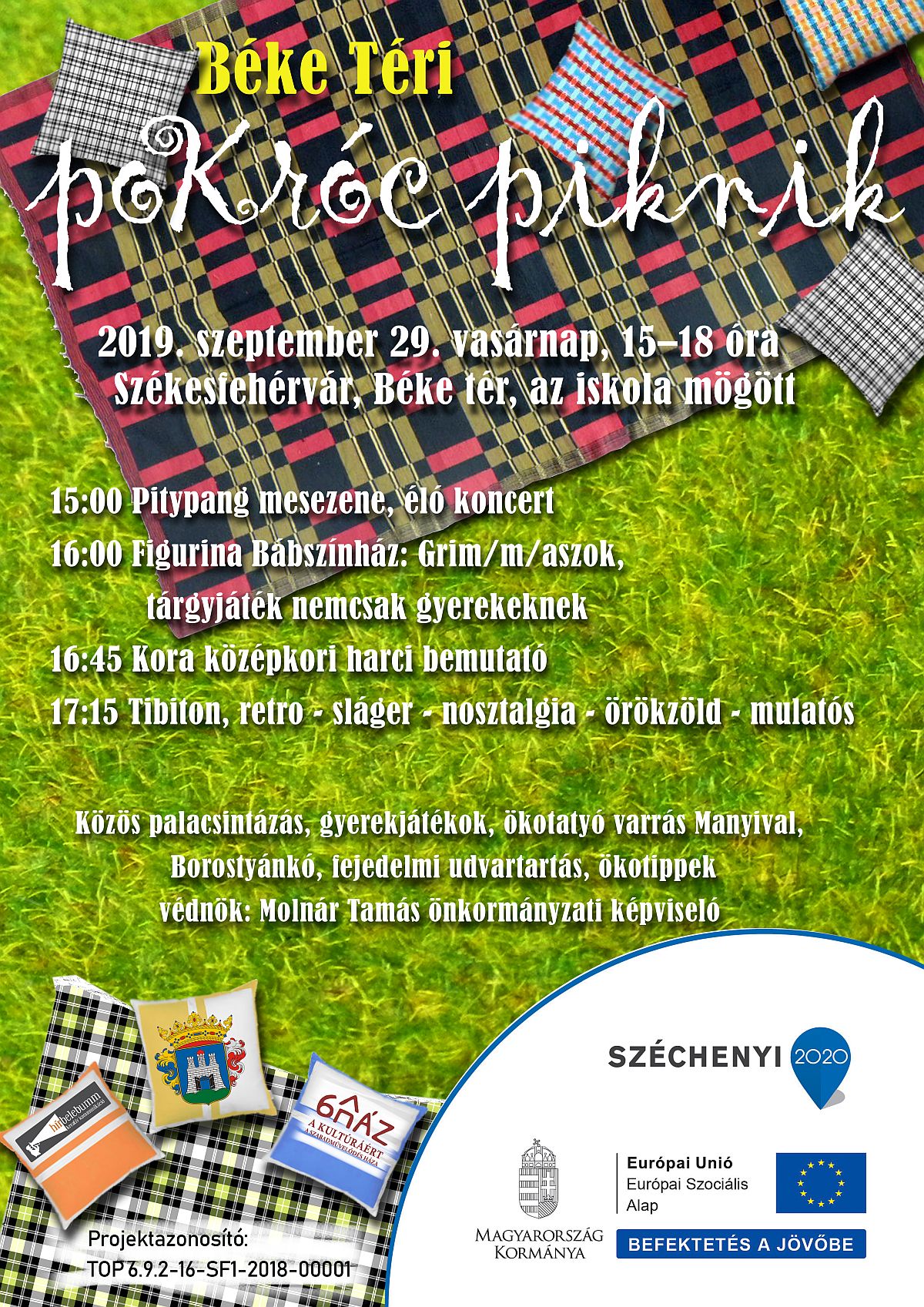 A júliusi Széna téri után ismét Pokróc Piknikre várják a fehérváriakat. Most vasárnap a Béke teret töltik meg pokrócokkal és színes programokkal a szervezők. A délután 3 órakor kezdődő rendezvényt a Pitypang mesezenkar gyerekkoncertje nyitja, majd a Figura Bábszínház felnőtteknek is szóló tárgyjátékos előadása következik, ahol hétköznapi használati tárgyak adnak elő négy jólismert Grimm-mesét.