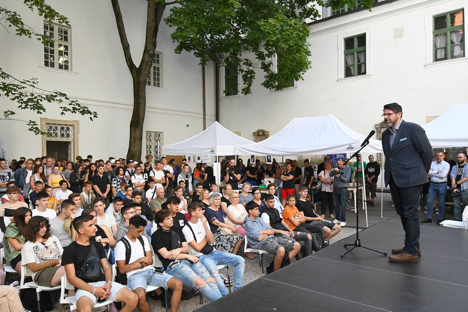 Dr. Belényesy Károly szakmai igazgató a Szent István Király Múzeum nevében köszöntötte a diákokat, és figyelmükbe ajánlotta a Hadtörténeti Múzeum gyűjteményéből válogatott, időszaki tárlatot és a magyar katonazene történetét bemutató fotógyűjteményt, valamint a szeptember 15-én nyíló, nagyszabású Munkácsy-kiállítást, melynek keretében Pákh Imre neves műgyűjtő Munkácsy-kollekciójának becses darabjait láthatjuk jövő januárig a Rendház épületben.