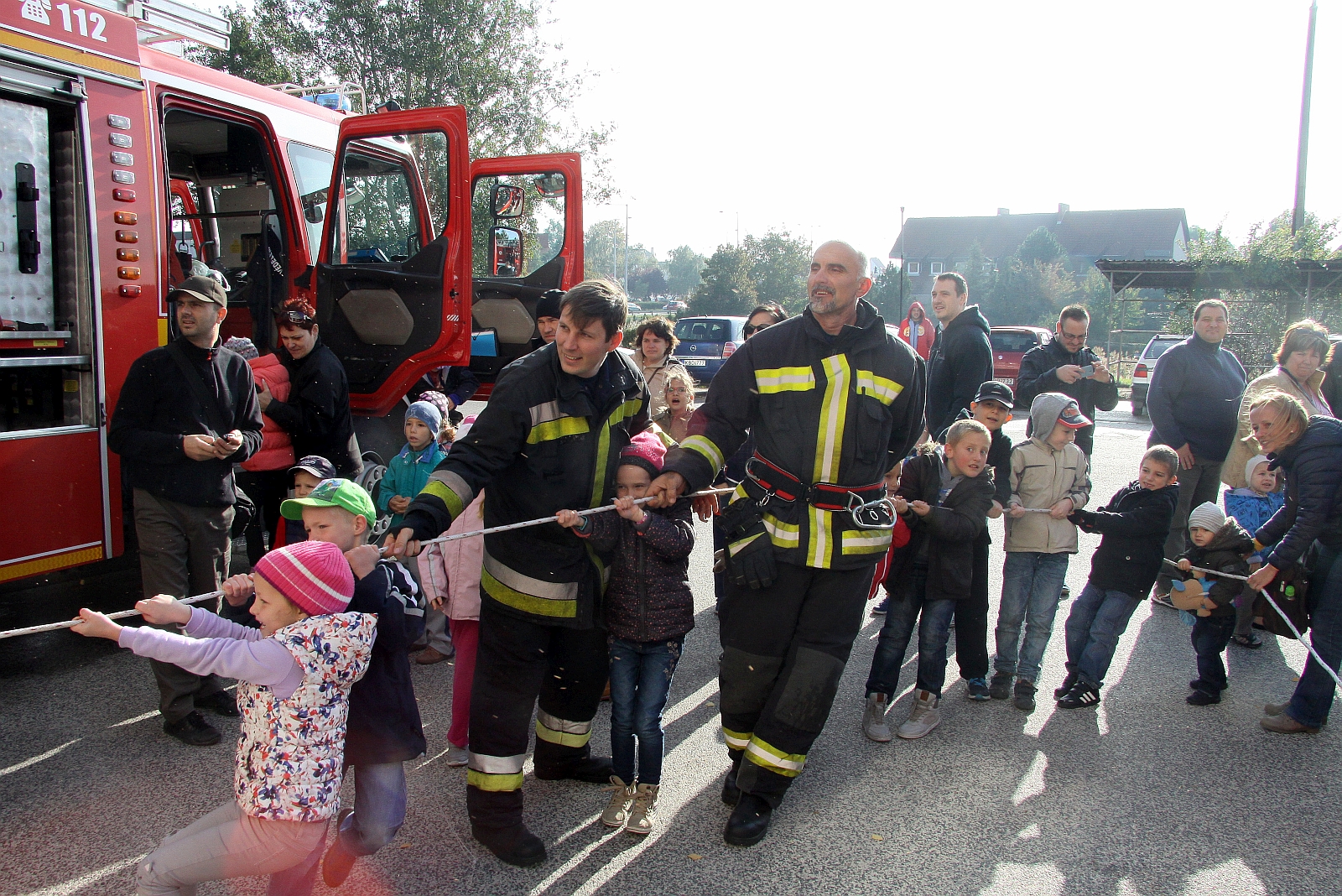 Bemutatók, kötélhúzás, jókedv - gyermekzsivaj a tűzoltóságon