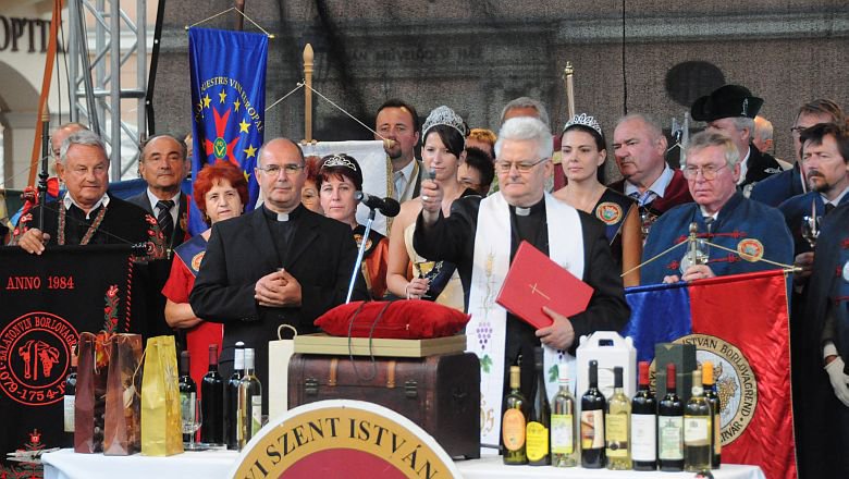 Spányi Antal megyéspüspök a Szent István Emlékév Cuvée mellett püspöki boráldását adta a borrendek zászlósboraira is.