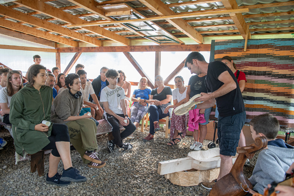 A hivatását tekintve erdőmérnökként dolgozó családfő, a bensőséges hangulatú találkozón avatott be bennünket különleges életútjába, így megtapasztalhattuk mit is jelent, ha valakit megérint a mindenség. Ahogy elmesélte, az egész az erdőben indult, hiszen gyermekkorában, amikor csak tehette, mindig az erdőt járta. Így aztán idejekorán megtanulta, hol keresse azt a fát, amelyből a legjobb hangú gardon készül, mert a hangszer teste egy darab fából van kifaragva, ami a hagyomány szerint legalább százéves kell legyen, egyenletes évgyűrűkkel, bogok nélkül. S ha már adott volt a népi hangszer, akkor az is természetes volt, hogy családja is követte az úton, így nagylánya Iringó a hegedűvel, míg Mózes fia, édesapja hangszerét választva egy kivételes csapatot alkotva, varázslatos ősi dallamokkal és dalokkal idézték meg azt a népi kultúrát, ami ma is alapja kell legyen a mindennapoknak. A csodapillanatoknak nem volt vége, hiszen Varga Zoltán barátunk, a néptánc legendája egy meglepetést tartogatott, egy ősrégi, de nagyon is jó hangú gardon történetét elmesélve csatlakozott a két fiatalhoz és együtt mutatták meg, hogy a népzene is mindenkié…