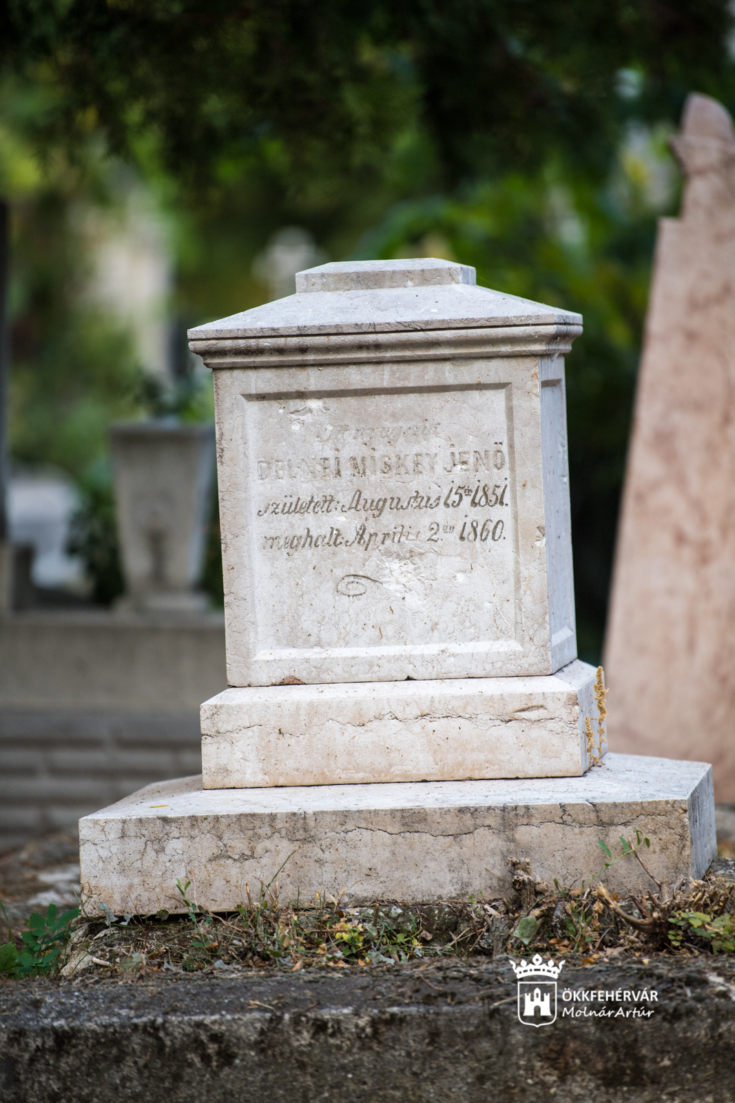 A várostörténeti séta elhaladt Nemes Delnei Miskey Ferencz, Szabad királyi Székes Fejérvár városa egykori tanácsnoka síremléke mellett is. A ma már nehezen kiolvasható felirat tanulmányozása közben itt találkoztunk össze Miskey Barbarával, aki örömmel mesélt 1789 és 1862 között élt üknagyapjáról. Tanácsnokként a város ügyeiért dolgozott és gazdaságát – köztük a mai Szedreskertben volt egykori szederkertet – igazgatta. A Miskey család „ősi fészke” Tinnyén, legnagyobb kriptájuk pedig Komárom-Esztergom megyében van, de a Hosszú temetőben is sok családtag nyugszik. Üknagyapjának ún. szarkofágos temetése volt, míg a mellette lévő síremlék – ami szintén a Városszépítő és –Védő Egyesületnek köszönhetően maradt meg, lett felújítva – az egykori tanácsnok 9 évesen, betegség miatt elvesztett unokájáé. Ez mélyen lesújtotta a családot, ahogy arról a rávésett sorok is tanúskodnak: „A vigasztalhatlan szülők s kesergő testvérek boldog nyugalmát, nagy reményét és pótolhatatlan drága kincsét rabolta el e sír! E halom egy magát boldognak érzett Család kimondhatatlan bánatának határ halma!”