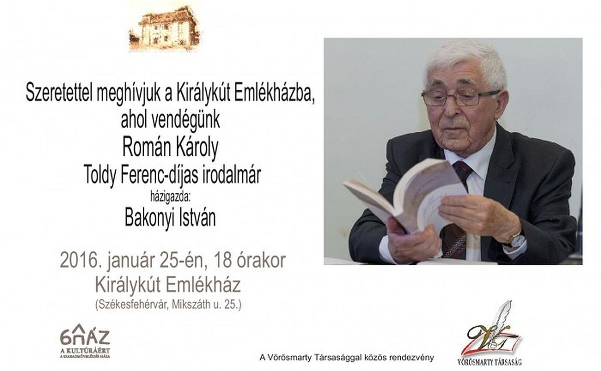 2016. január 25-én, hétfőn este újabb kulturális programra várják az érdeklődőket a Királykút Emlékházban. A 18.00 órakor kezdődő rendezvényen Román Károly Toldi Ferenc-díjas irodalomtanár lesz a Királykút Emlékház vendége. A beszélgetést dr. Bakonyi István József Attila-díjas irodalomtörténész vezeti, melyre várnak minden érdeklődőt.