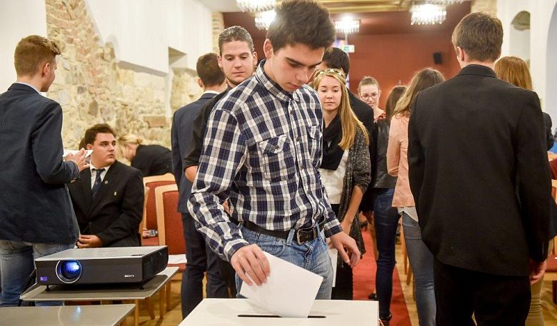 A Hiemer-ház házasságkötő termében tartotta tisztújító ülését a Székes- fehérvári Diáktanács szerda délután. A testület szavazati joggal rendelkező tagjai a háromfős elnökséget – egy elnököt és két alelnököt – választották meg az eseményen. Az elnöki tisztséget mostantól Bódig Péter tölti be, míg a Diáktanács két alelnöke Marton Gergő és Orsik Péter lett.