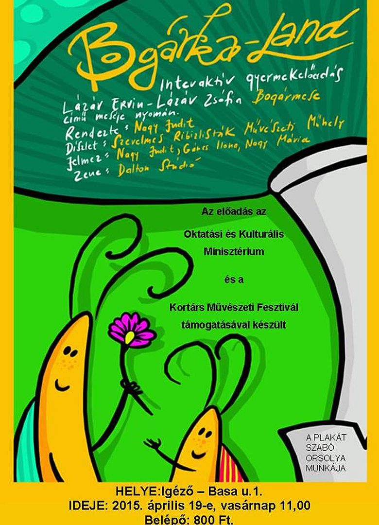 2015. április 19-én, vasárnap délelőtt interaktív előadásra várnak minden érdeklődőt a fehérvári Igézőben (Basa utca 1.). A Szabad Színház előadásában a Bogárka- Land című interaktív mesejátékot adják elő gyerekeknek és felnőtteknek egyaránt. Lázár Ervin és Lázár Zsófia meséjét Nagy Judit állította színpadra. A program vasárnap délelőtt 11 órakor kezdődik.