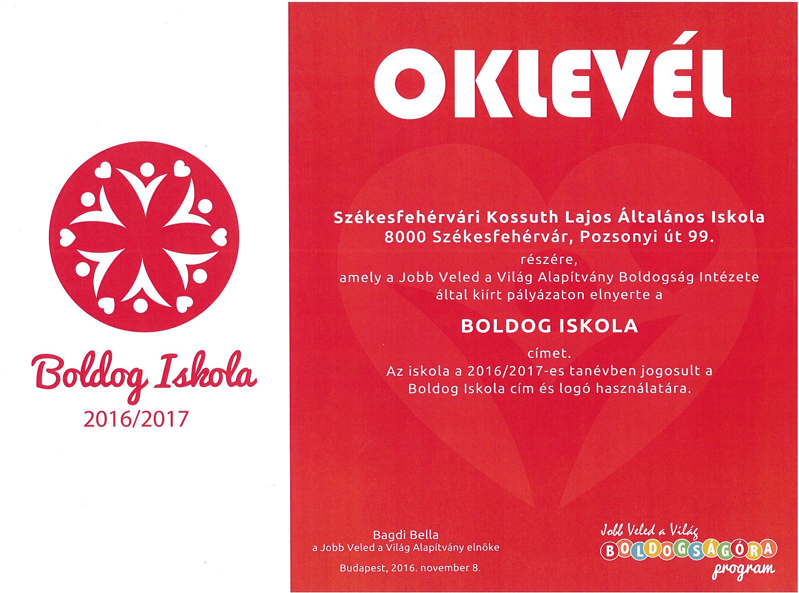 Boldog Iskola címet kapott a Kossuth Lajos Átalános Iskola