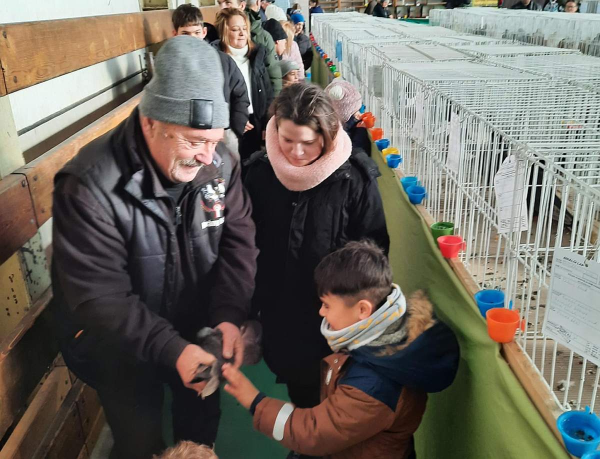 A saját családjuk nélkül élő kicsik először megilletődve szemlélték a ketrecekben kiállított kicsi és óriás nyulakat, különböző kakasokat, tyúkokat, galambokat, énekesmadarakat és papagájokat.