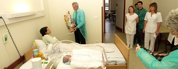 A hagyományokhoz hűen életbiztosítással ajándékozta meg Székesfehérvár a városban 2009-ben elsőként született gyermeket. Pénteken délelőtt a Fejér Megyei Szent György Kórház Csecsemő és Újszülött osztályán Warvasovszky Tihamér polgármester köszöntötte a boldog kismamát és az egy napos Borsos Normant.
