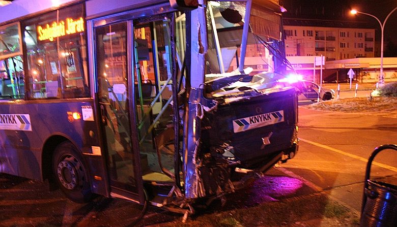 Busszal ütközött egy furgon éjszaka a Széchenyi - Horvát István kereszteződésben