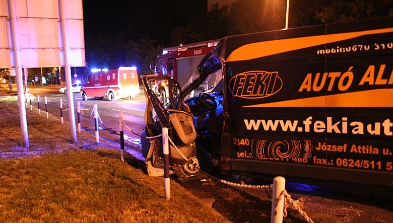 Autóbusszal ütközött egy furgon szerdán éjfél előtt nem sokkal a Széchenyi út - Horvát István utca kereszteződésében. A furgon vezetője beszorult a járműbe, a sérültet a katasztrófavédelmi műveleti szolgálat irányításával a megyeszékhely hivatásos tűzoltói szabadították ki a roncsok közül. A munkásokat szállító buszon négyen ültek, az utasok nem sérültek meg.