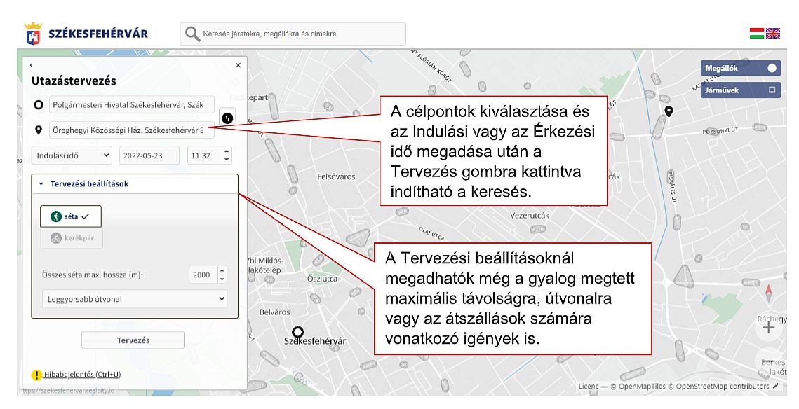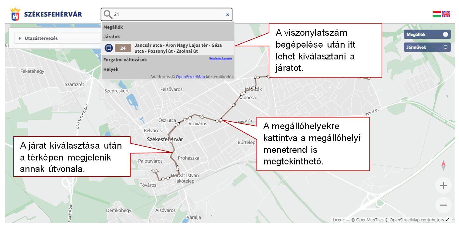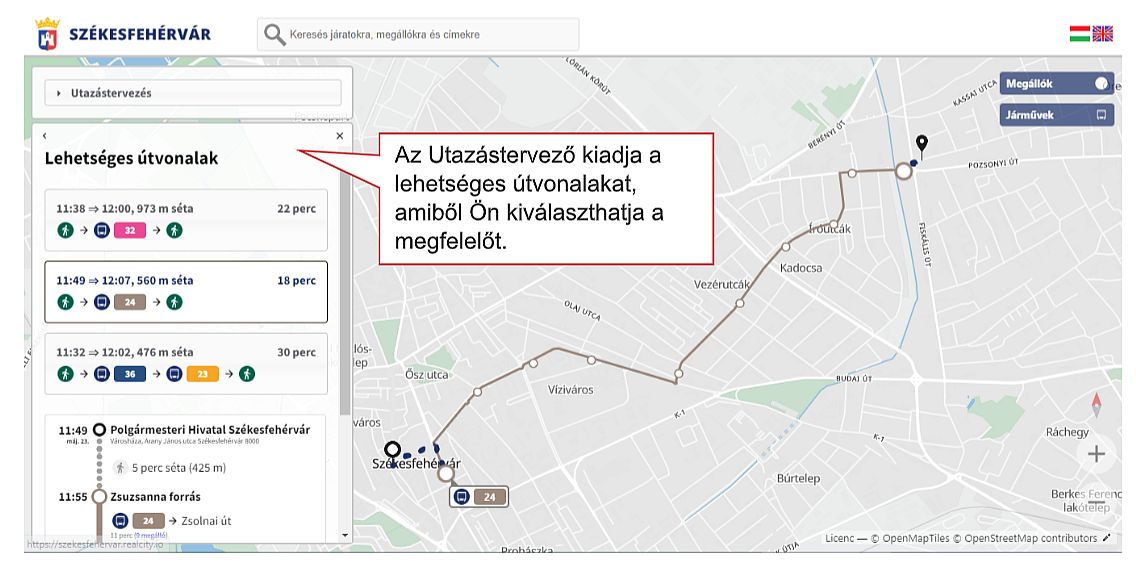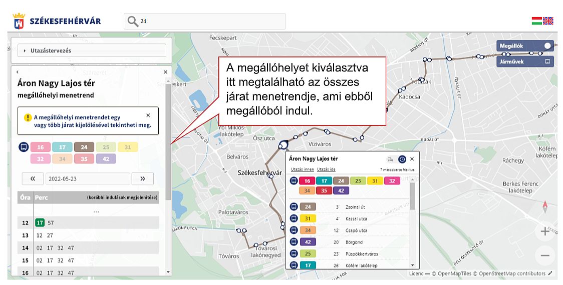 A szekesfehervar.realcity.io oldalra kattintva érhető el az új, bővített menetrendet és a hálózatokat bemutató felület. A térképen az egyes megállóhelyekre kattintva az ott megálló járatok menetrendjei is elérhető. Emellett két tetszőleges pont között pár kattintással a rendszer az Ön számára legkedvezőbb eljutást is megmutatja.