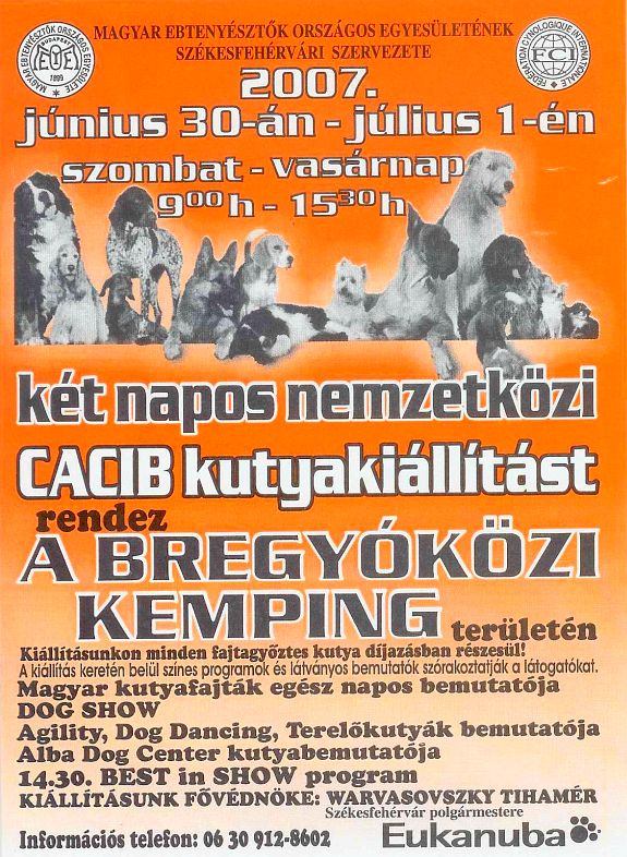 A kutyakiállítást a Bregyó Sportközpontban rendezik június 30-án és július 1-jén, szombaton és vasárnap. A rendezvényen majd 20 ezer látogatóra számítanak a két nap folyamán. A nemzetközi kiállításon több mint 200 kutyafajta tekinthető meg és majdnem 2000 nevezett kutya érkezése várható. A program délelőtt 10 órától délután 17 óráig tart mindkét napon. A látogatókat egész napos kutyabemutatók várják!