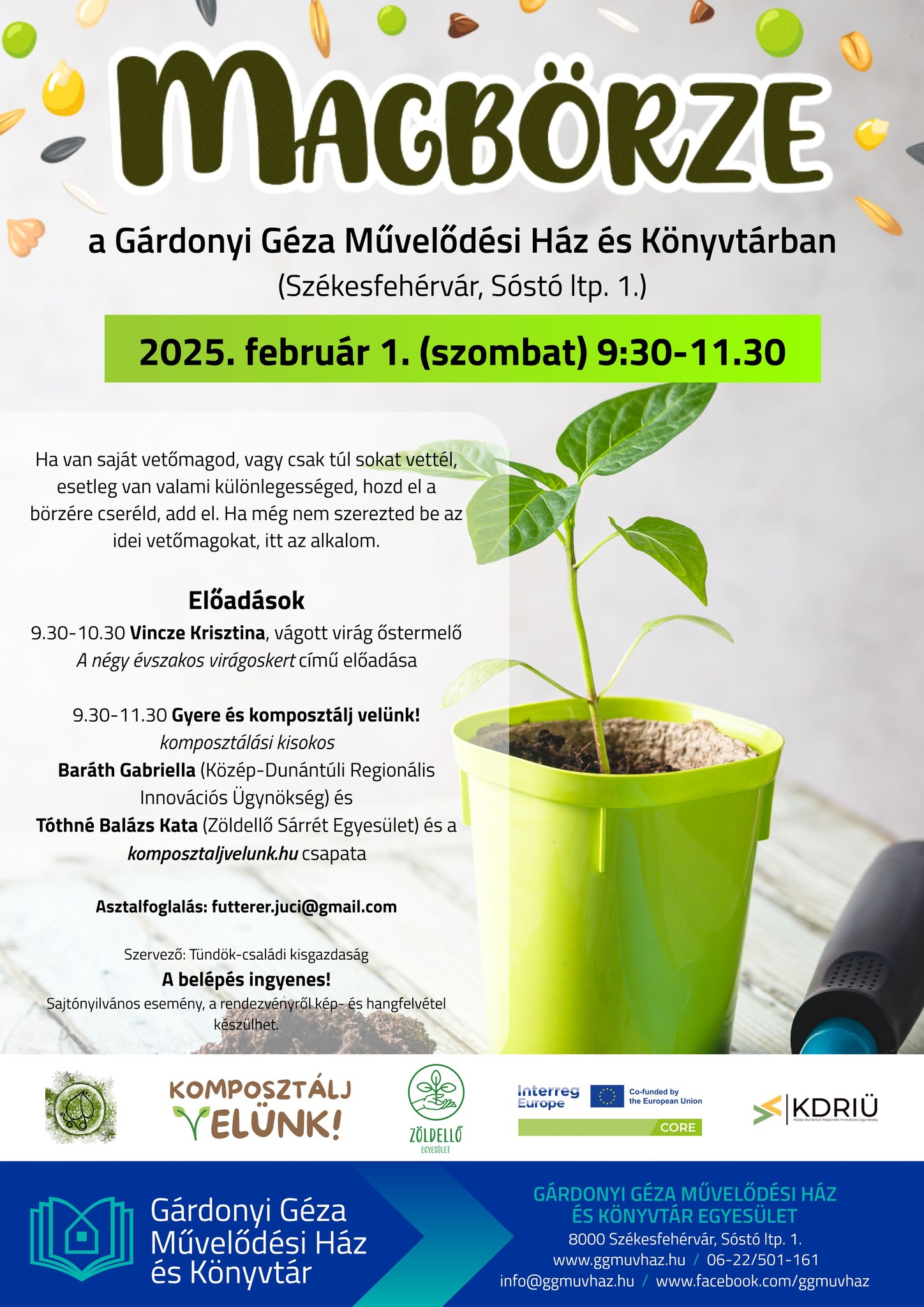 csere-bere programot a Gárdonyi Géza Művelődési Házban. November 15-én, szombaton 10 és 14 óra között lesz lehetőség könyv, ruha, cipő, kiegészítők, gyerekjátékok, illetve saját termény cseréjére. Az eseményen kapszula újrahasznosító workshop is várja a résztvevőket.