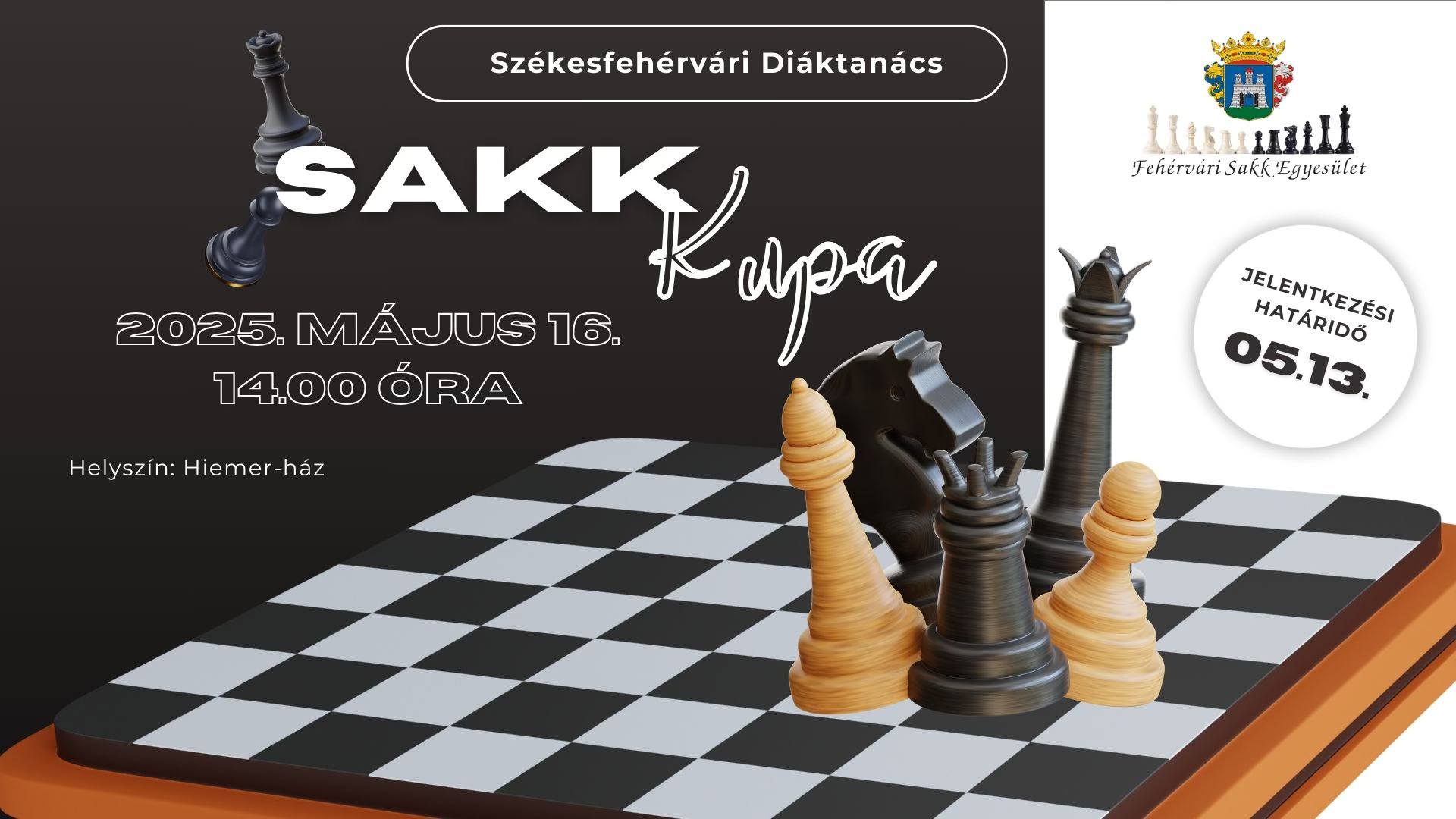 Sakk Kupát – négy korosztályban – azoknak a fiataloknak, akik szeretnék megtapasztani, hogyan zajlik egy sakkverseny profi körülmények között. Május 16-án, pénteken délután a Hiemer-ház báltermében rendezik meg a kupát, amelyre még lehet nevezni!