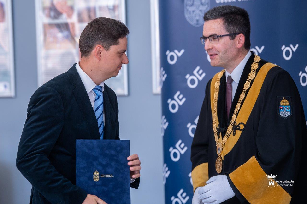 Címzetes egyetemi docensi címet vett át Mészáros Attila az Óbudai Egyetemen