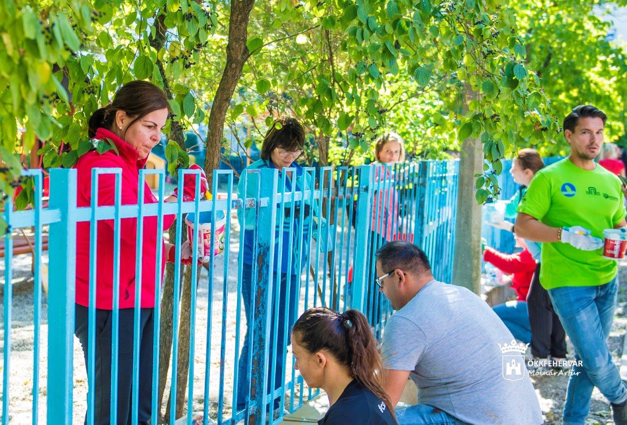Kerítésfestés közösen! – ezzel a felhívással invitálták meg a második önkéntes napra a lakókat, ezúttal a Tóvárosi Óvodába. Most is azokat szólították meg, akik szívesen ragadtak ecsetet, hogy az ide járó kisgyerekek mindennapjait szebbé varázsolják: a felhíváshoz ötven önkéntes, támogató csatlakozott vasárnap.