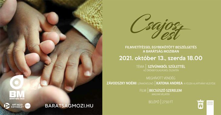 Az örökbefogadás felelősségteljes döntés, egy életre szóló elköteleződés, amelyre a jelentkezők többsége azért vállalkozik, mert nem lehet vér szerinti gyermeke. A statisztikák szerint évente mintegy ezer gyermeket fogadnak örökbe Magyarországon. Az utóbbi néhány évben az örökbefogadásra várók száma emelkedik, többen vannak, mint ahányan az örökbe adható gyermekek – a várakozás így sokszor évekig is tarthat, főleg, ha újszülöttre vágynak a jelentkezők. Aztán egyszer csak megszólal a telefon és egyik pillanatról a másikra alapjaiban megváltozik minden: bár az örökbe fogadni szándékozó szülőket a hivatalos eljárásban igyekeznek mindenre felkészíteni, az öröm mellett sokszor kétségek, nehézségek is felmerülhetnek – ezekről, és sok más, a témával kapcsolatos kérdésről is szó lesz a Barátság mozi következő Csajos estjén, amelynek két vendége is lesz október 13-án, szerdán.