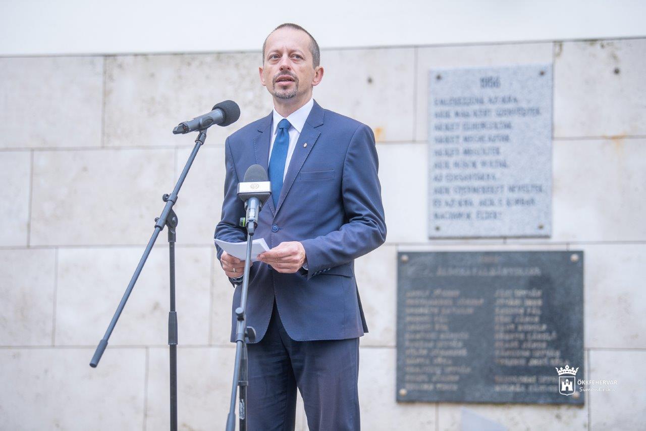 A Székesfehérvári Tankerületi Központ vezetője hozzátette, hogy gyermekeink már a szabadságba születtek, ugyanakkor a jelenkor világának történései háborúi, megmutatják, hogy milyen törékeny is ez a szabadság. „Ezért a legfontosabb feladatunk, hogy fiataljainkat erkölcsös, tiszta életre neveljük. Példaként lebegjen előttük az 56-os fiatalok hősi kiállása, hogy a deszakralizált világ konformista szemlélete ne ragadjon rájuk és ne viseltessenek közönnyel egymás iránt. Mert a közöny morális válságot szül.”