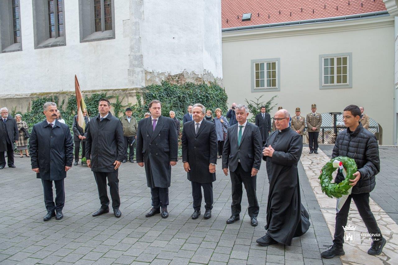A csendes, imádságos megemlékezésen részt vettek Székesfehérvár város és Fejér vármegye közéleti vezetői, valamint a fegyveres erők és a rendvédelmi szervek képviselői is és közös koszorút helyeztek el az áldozatok emlékére. Megemlékezett a forradalom áldozatairól Vargha Tamás miniszterhelyettes, Székesfehérvár országgyűlési képviselője, Törő Gábor és Tessely Zoltán országgyűlési képviselő, Dr. Molnár Krisztián, a Fejér Vármegyei Közgyűlés elnöke, Róth Péter, Székesfehérvár alpolgármestere, Dr. Kovács Péter, a Fejér Vármegyei Kormányhivatal főigazgatója, Dancs Norbert, a Székesfehérvári Járási Hivatal vezetője és Lehrner Zsolt, Székesfehérvár alpolgármestere is. A fegyveres erők és a rendvédelmi szervek képviselői között jelen volt az ünnepségen a Magyar Honvédség Parancsnokságának képviseletében Cziegler Zalán ezredes, a NATO parancsnokság képviseletében Topor István ezredes, és Vigh Tibor alezredes, valamint Szabó Vendel rendőrezredes, a Fejér Vármegyei Rendőrfőkapitányság főkapitánya.