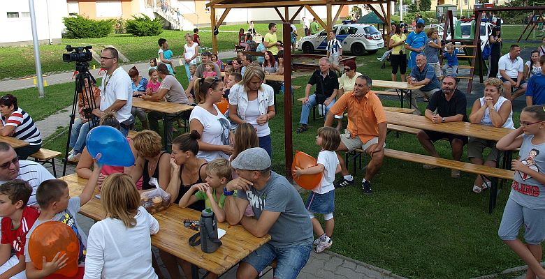 A programon Viza Attila a városrész önkormányzati képviselője is köszöntötte a megjelenteket. „Az a célunk, hogy olyan jó minőségű lakásokkal tudjuk az itt élőket és ide települőket ellátni, amelyek biztosítják számukra a legkedvezőbb feltételeket. Nagyon szépen köszönöm Csárádi László és Horváth Dávid uraknak, hogy megkerestek, és ezáltal segíteni tudtam összehozni azt a kapcsolatot, amely ilyen gyümölcsöző lehet a jövőben. A palotavárosi LISZI-nek feladata és célja, hogy a lakótelepen élőknek olyan közösségi programokat szervezzen, mint ez a mostani” – mondta Viza Attila, aki a rendezvény keretében adta át azt a két focikaput is, amelyet a lakóközösségnek ajándékozott. Ezt követően Csárádi László a társasház közös képviselője fejezte ki köszönetet Székesfehérvár városának.