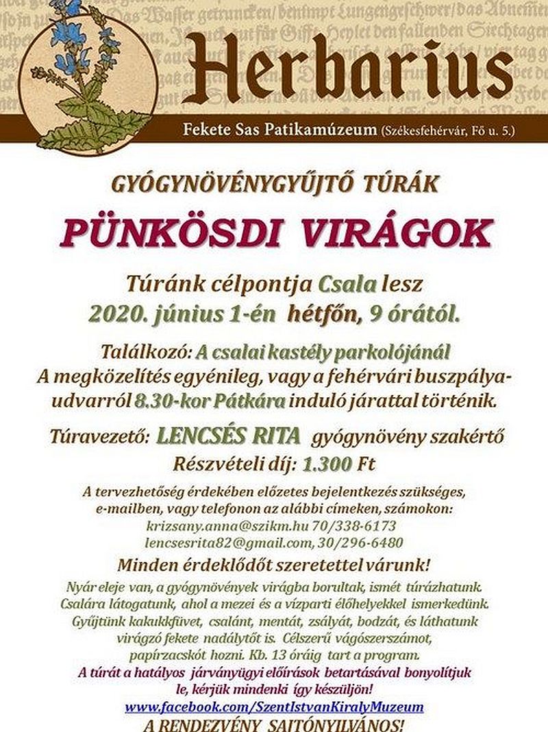 A Herbarius programok következő gyógynövénygyűjtő túrája Csalára indul: pünkösdhétfőn kakukkfüvet, zsályát, mentát és bodzát is szedhetünk. A házipatikák praktikáiról Lencsés Rita szakértő beszél a résztvevőknek, akik a virágzó természet élményével is gazdagabbak lesznek.