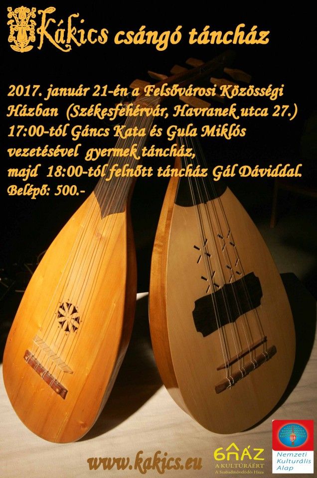 Január 21-én a Felsővárosi Közösségi Házban tartja az új év első csángó táncházát a fehérvári alapítású Kákics Együttes. A népzenei esemény 17 órakor kezdődik, Gáncs Kata és Gula Miklós vezetésével lesz gyermek táncház, majd 18 órától felnőtt táncház lesz Gál Dáviddal.