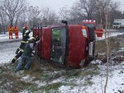 8 óra 23 perckor érkezett a jelzés a tűzoltóság ügyeletére egy újabb balesetről. A 81-es főúton, Sárkeresztes közelében egy osztrák rendszámú Ford Transit mikrobusz az út menti árokba hajtott, ahol a jobb oldalára borult. A mikrobuszban senkinek sem esett baja. A Fordot a tűzoltók a műszaki mentőszer csörlőjével állították kerekeire, majd kihúzták az árokból.