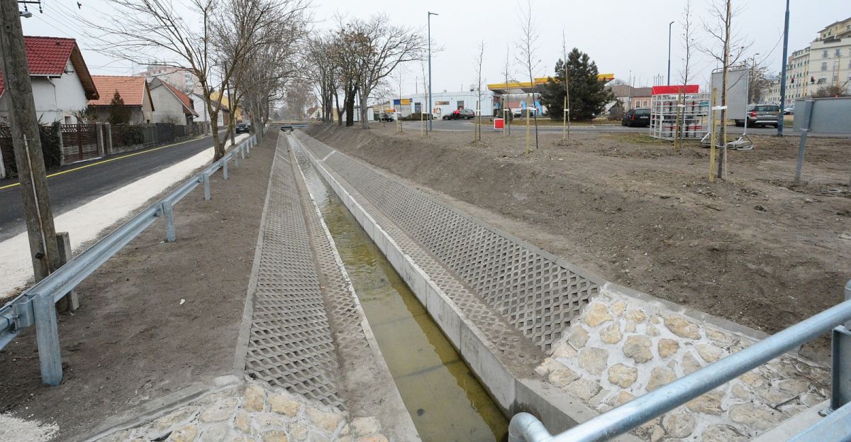 Négy hónapja adták át a Bőrgyár utcai gyalogos híd környékén a munkaterületet, hogy a kivitelező Colas Alterra Zrt. megkezdhesse a Varga-csatorna fejlesztését. A beruházás keretében megtörtént a meglévő földmeder burkolása, közel 207 folyóméter hosszúságban beton burkolóelemek felhasználásával. Ezen kívül a Schwäbisch Gmünd út Gellért újsorral való összekötése is elkészült.