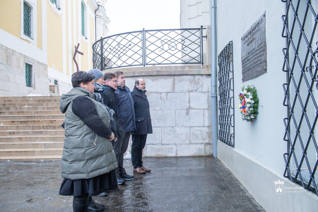 Tiszteletükre a Hősök terére vezető lépcsősor mellett, a Városháza épületének falán található emléktáblánál tartottak néma megemlékezést csütörtökön. Közösen helyezett el koszorút dr. Cser-Palkovics András polgármester, Róth Péter alpolgármester, Lehrner Zsolt alpolgármester és Schneider Istvánné, a Fejér Vármegyei Kormányhivatal Székesfehérvári Járási Hivatala hivatalvezető-helyettese.