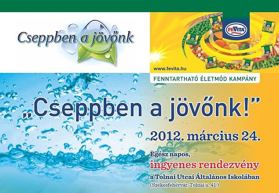 „Cseppben a jövőnk!” címmel egész napos ingyenes rendezvény várja a gyerekeket és szüleiket, március 24-én, szombaton, a 30 éves székesfehérvári Tolnai Utcai Általános Iskolában. Az eseményre a Kaposvári Roxínház Egyesület szervezésében, a Székesfehérvári Hűtőipari Zrt. támogatásával kerül sor. A programok 9 órakor kezdődnek és délután 4-ig tartanak.