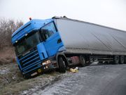 3 óra 28 perckor újabb jelzés érkezett a tűzoltóság ügyeletére. Székesfehérváron a Torockó utcában egy szójaszállító pótkocsis teherautó csúszott az árokba, amely szintén a tűzoltók segítségével tudta folytatni az útját.