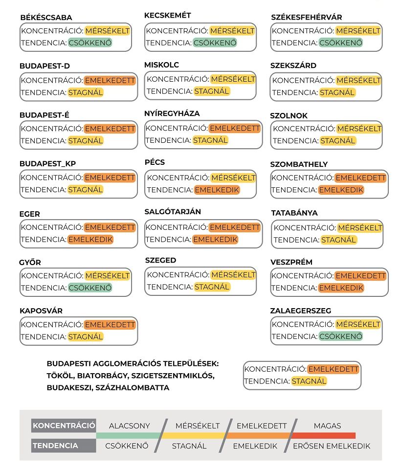 A 14. hét mérései alapján jelentős a területi eltérés a vizsgált települések között: emelkedést tapasztaltak Egerben, Salgótarjánban, Szombathelyen, Veszprémben és Pécsett, míg Békéscsabán, Debrecenben, Győrben, Zalaegerszegen, Kecskeméten és Székesfehérváron csökkenő koncentrációt mértek.Az aktív fertőzöttek magas száma miatt a járványügyi szabályok szigorú betartására figyelmeztet az NNK.