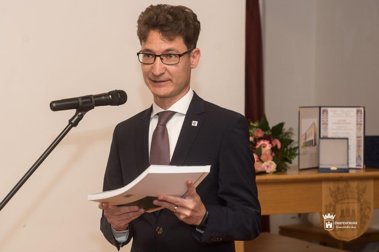 A Hiemer-házban rendezett ünnepségen Tima Zoltán Ybl-díjas, Pro Architectura-díjas, Prima Primissima-díjas építész, a Magyar Művészeti Akadémia rendes tagja mondott beszédet. Méltatta az építész munkáját, hivatástudatát és azt a szeretetet, amellyel Székesfehérvár közösségét szolgálja.