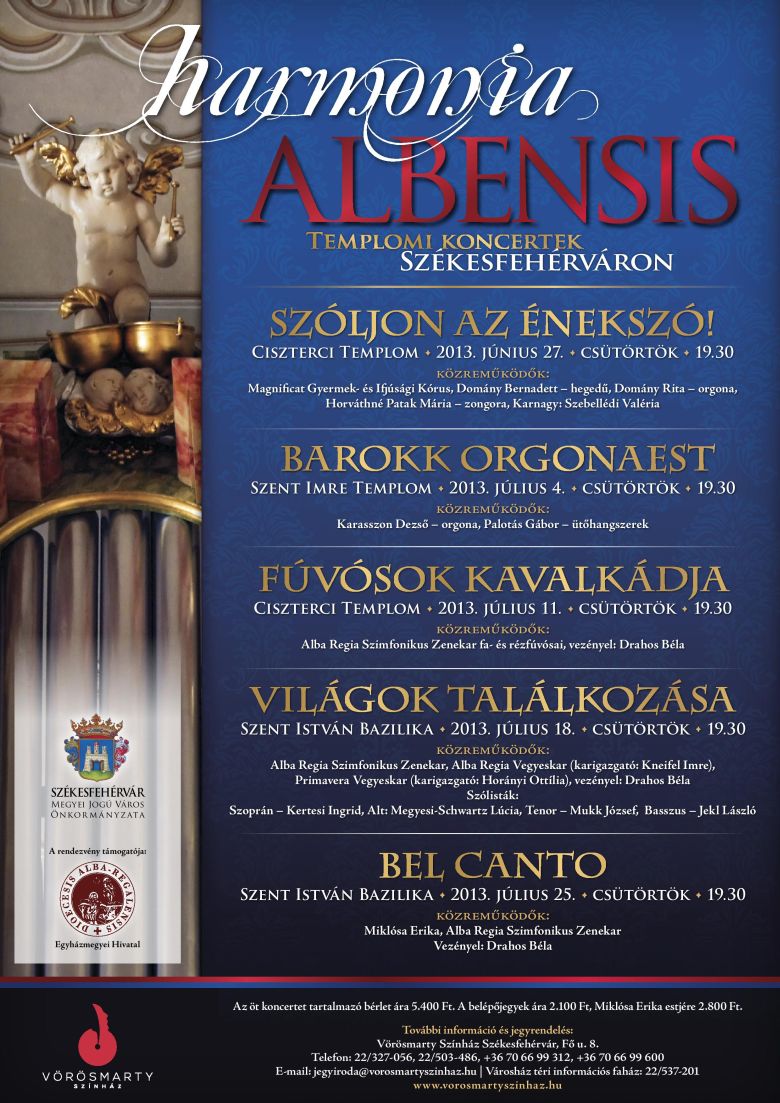 Tizedik alkalommal rendezik meg a Harmonia Albensis koncertso-rozatot a fehérvári templomokban. A hagyományokhoz híven az utolsó alkalommal Miklósa Erika ad koncertet a Szent István Bazilikában. A jegy-és bérletárak továbbra is változatlanok.