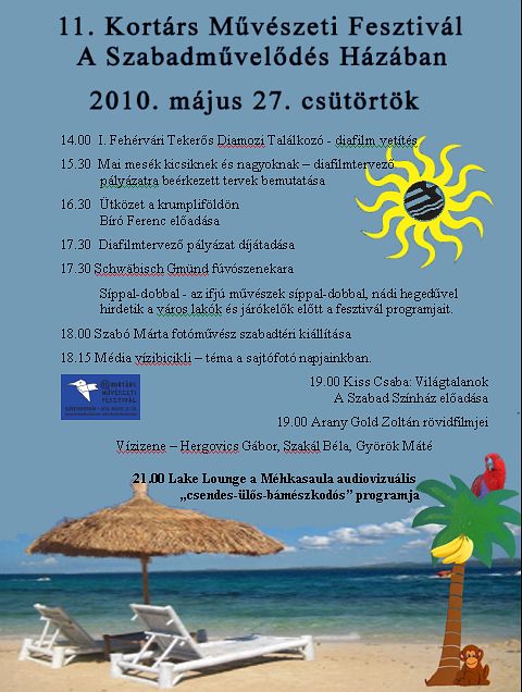 A Szabadművelődés Házába költözik csütörtökön a Kortárs Művészeti Fesztivál. 14 órától számos programmal várnak minden korosztályt. A programsorozat diavetítéssel kezdődik, az utolsó program este 21 órakor kezdődik. A fesztivál ezen kívül számos helyszínen, számos programmal várja az érdeklődőket.