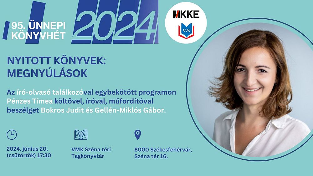 Június 20-án, csütörtökön író-olvasó találkozóval egybekötött programra kerül sor Pénzes Tímea költővel, íróval, műfordítóval.