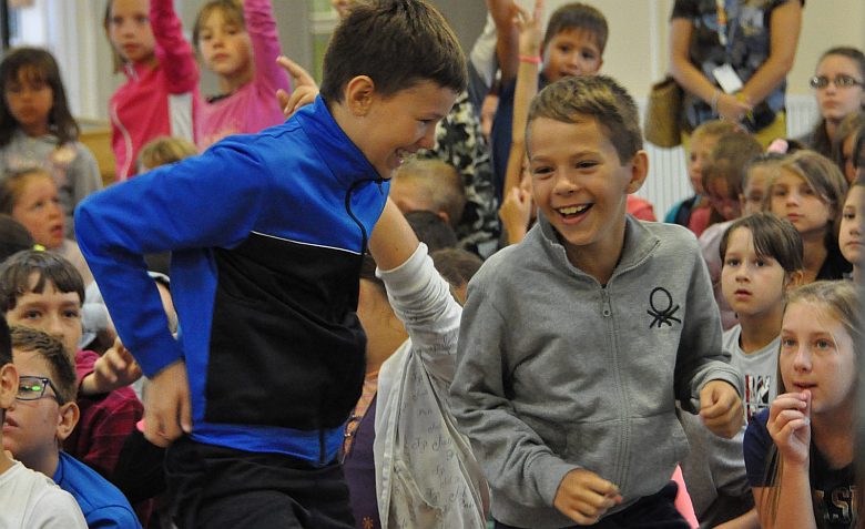A Napraforgó Városi Napközis Tábor ötödik hetében a szerdai zenés nap vendégei a Dalmesterek voltak, akik már évek óta színesítik műsorukkal a tábor életét. A gyerekek által nagyon kedvelt zenés program főszereplői - a hangszereken kívül - Molnár Viktória és Kremnitzy Géza, akik minden évben nagy örömmel érkeznek a Vörösmarty Mihály Általános Iskolába. Ez idén sem volt másképp, mint ahogy az sem, hogy a több, mint száz diák arcára hamar sikerült mosolyt csalniuk. A tábor jövő héten zárul – mintegy 2200 fős összlétszámmal.
