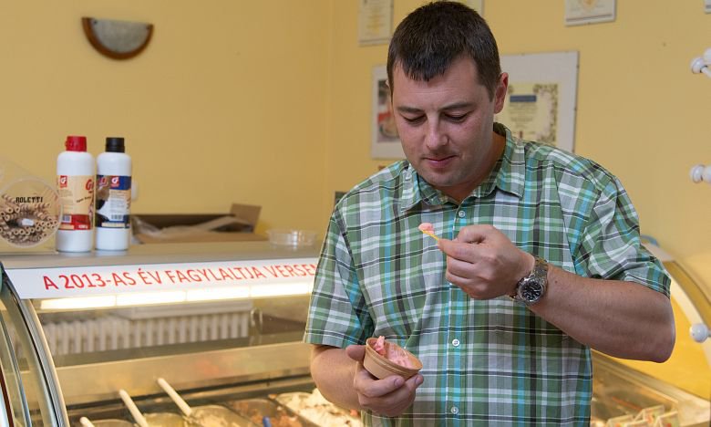 „Mivel sok cukrászda használ a munkát megkönnyítő félkész sűrítményeket, állagjavítókat és festékanyagot, ezért az emberek elszoktak a hagyományos ízektől. Például a meggyfagyiban nincsen a joghurtokban megszokott keserű mandula aroma, ezért elsőre furcsának tűnhet.” – állapította meg a cukrászmester.