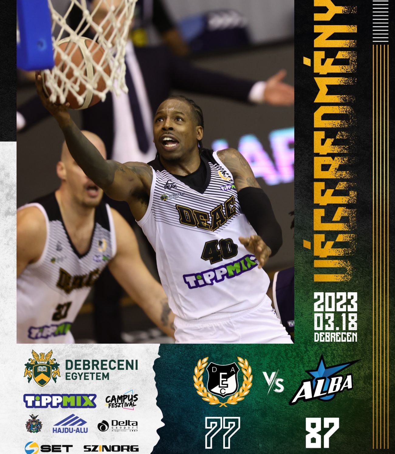 A 24. fordulóban a DEAC férfi NB I-es A-csoportos kosárlabdacsapata az Arconic-Alba Fehérvár együttesét fogadta. A két gárda első körös meccsét a Fehérvár nyerte 106-78-ra. Most, a második csatát, ha nem is akkora különbséggel, de biztosan nyerte az Alba.