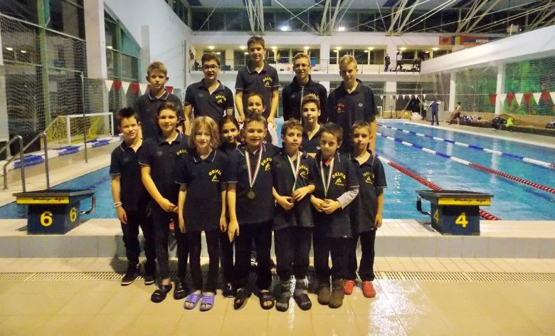 A 2005/06/07-es korosztály (képünkön) Debrecenben versenyzett a Hajós Alfréd-kupán. A szintén népes mezőnyben 27 csapatból 388 versenyző ugrott vízbe A korosztályos versenyen 15 úszóval vett részt a Delfin.