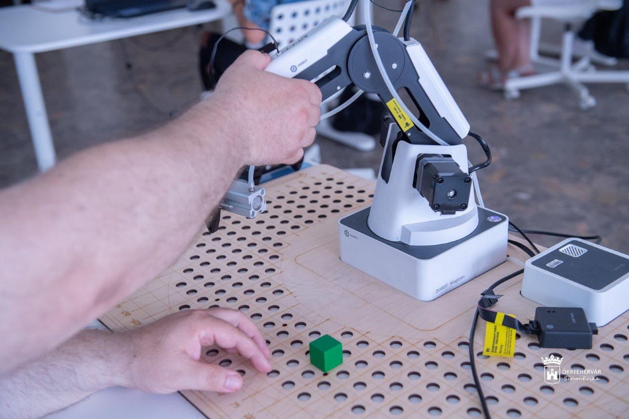 A képzők képzését végzi most az Alba Innovár, mondta el Gugolya László, az Innovár szakmai vezetője. Az ipari robotokat utánzó, de kifejezetten oktatóeszközöket használnak, mert mint Gugolya László is megerősítette: a cél az, hogy ne idegenkedjenek ezektől a technológiáktól, merjenek modern technikai eszközöket használni.