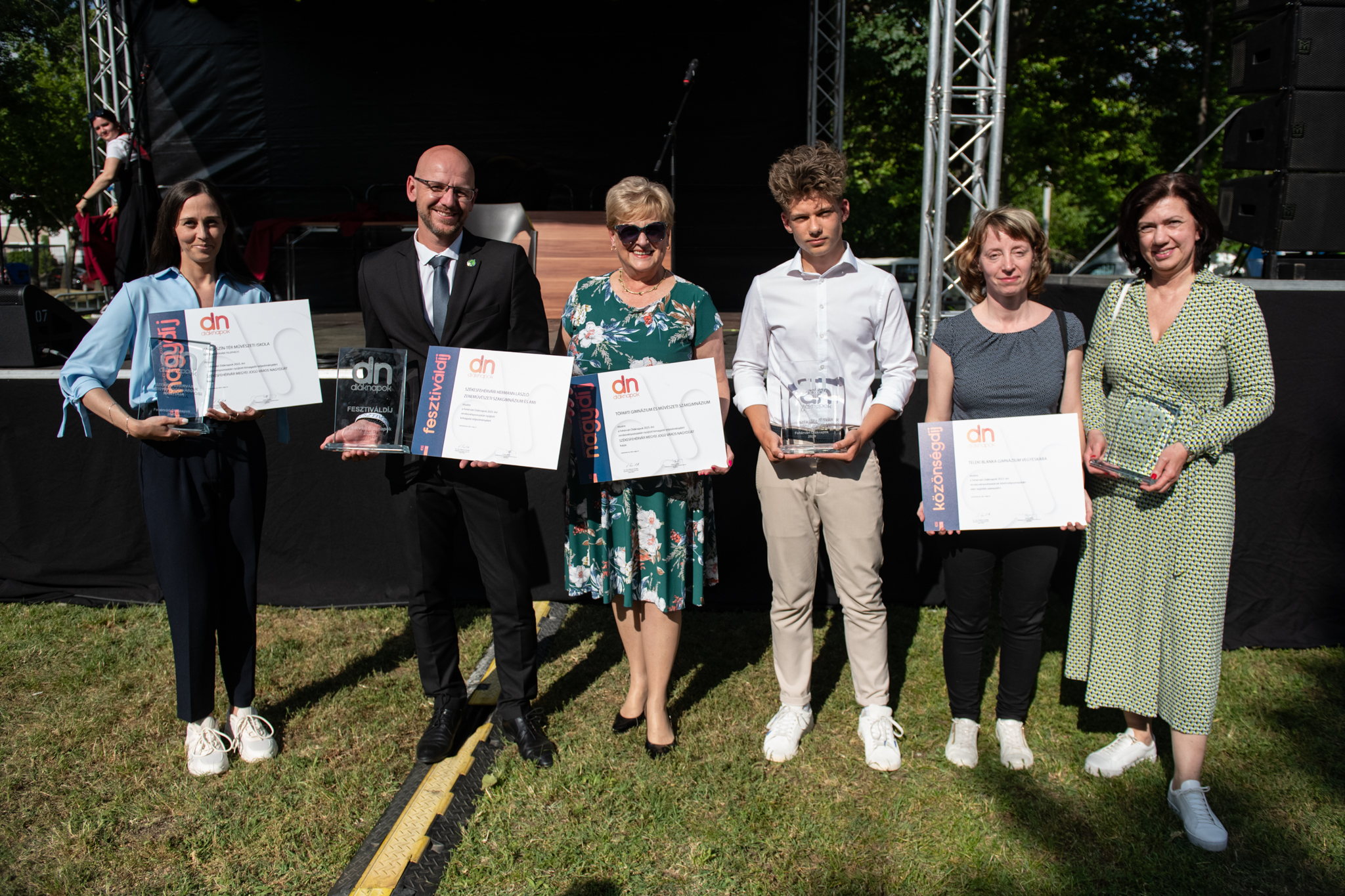 A programmal egy időben, a Székesfehérvári Közösségi és Kulturális Központ mellett felállított színpadon adták át a Fehérvári Diáknapok fesztiváldíjait.