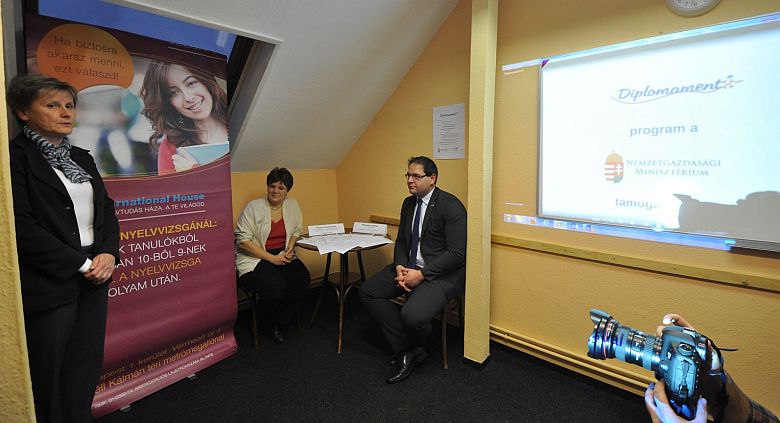 A Diplomamentő programról Mészáros Attila alpolgármester ls Szalay Zsuzsanna az International House Language School Kulturális és Szolgáltató Kft. ügyvezető helyettese tartott sajtótájékoztatót a London Style nyelviskolában.