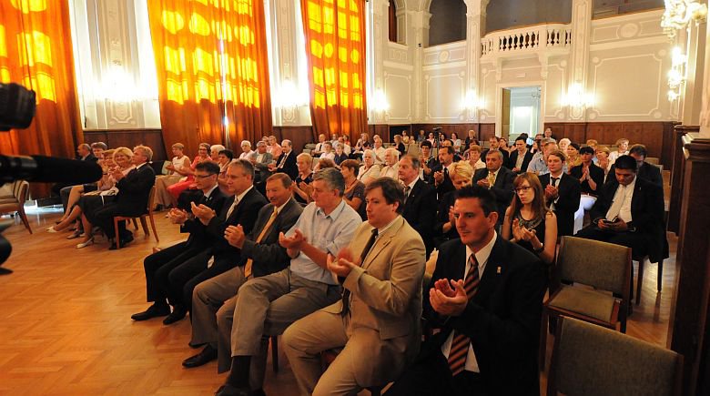 Szombat este Gogol: Az ellenőr, avagy a revizor premierje előtt adták át Székesfehérvár Önkormányzatának elismerését, a „Pro Theatro Civitatis Albae Regalis” díjat, melyet idén Ladányi Júliának, a Vörösmarty Színház színművészének és a 2021-ben alapított, a város kulturális életében egyre nagyobb szerepet betöltő Örökség Csoportnak ítéltek oda.