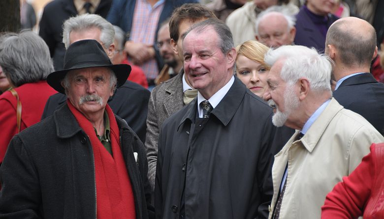 Nagy Benedek szobrászművész Balsay Istvánnal Székesfehérvár korábbi polgármesterével és Kovács Péter Barnabás művészettörténésszel.