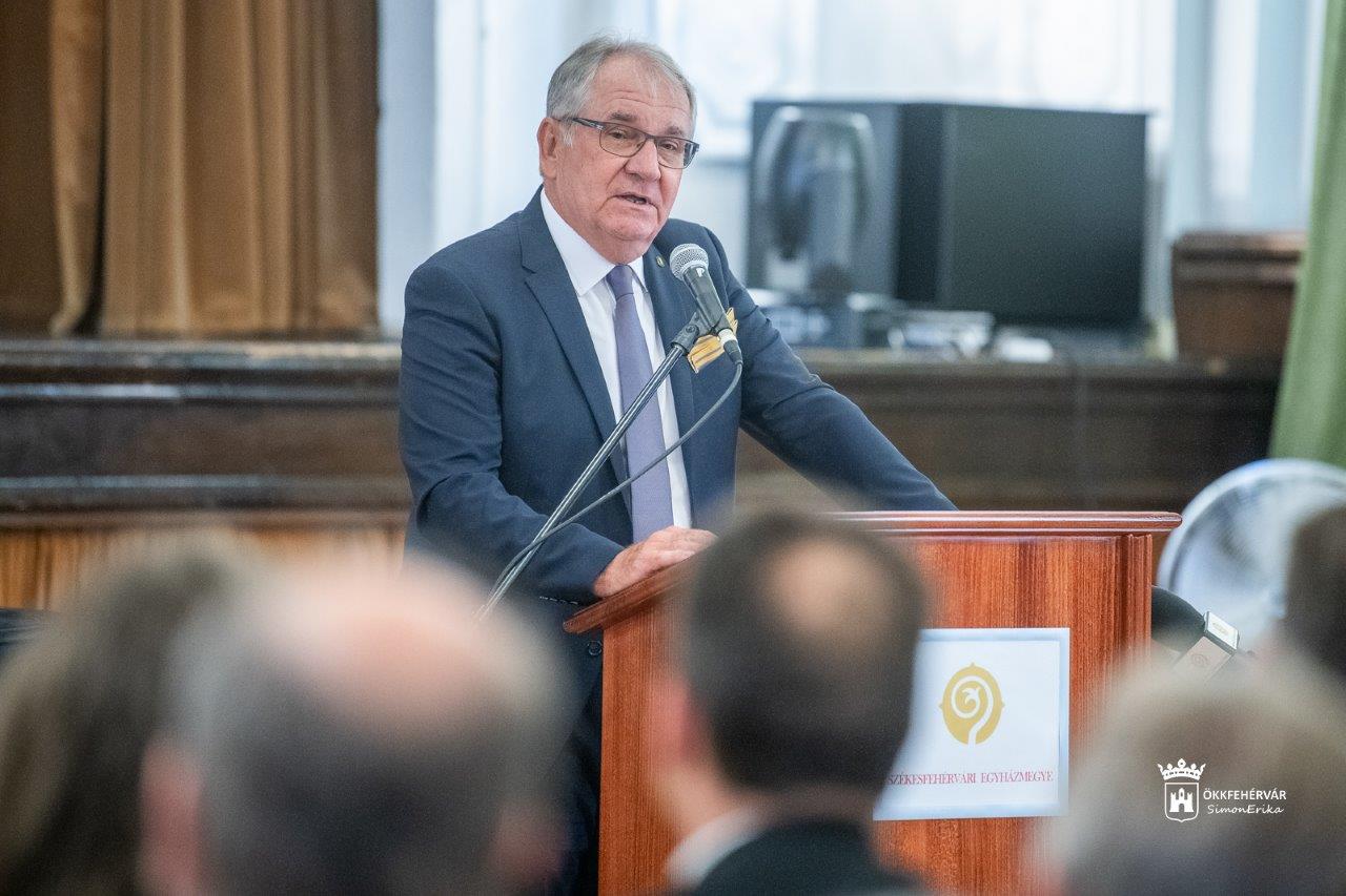 „Mi is keressük, hogy a Szent István-i értékendben mi az, ami éppen nekünk szól, amit tőle tanulhatunk, és amit nekünk mond éppen itt, Székesfehérváron. Szent István számomra olyan ember, akinek az identitása hiteles volt, aki tudott önmagával azonos lenni, akiben nem volt semmiféle keresgélés, identitásválság és útelágazás. Olyan ember volt, aki találkozott a kereszténységgel, azt a szívébe fogadta és ahhoz hűséges maradt. Azonos lett a maga hitével.” – fogalmazott ünnepi köszöntőjében Spányi Antal megyés püspök. Arról is szólt, hogy az államalapító életében minden egységben volt, és ebben az életben azonos értékek szerint harmonizált a gondolatvilág, a cselekedet és az eszmeiség. Ma az embereknek szükségük van ilyen példákra, hiszen sokan azt sem tudják, hogy kicsodák, és keresik az útjukat. Fontos meglátnunk azokat az embereket, akik el tudnak indulni és kitartanak egy úton, a döntéseiket tudják vállalni, és olyan teljesítményt mutatnak fel, amely mások javára, mások életének a szolgálatára van és az egész társadalmat gazdagítja. A Szent István Érdemrend és Díj Alapítvány kuratóriumának évről évre ilyen embereket kell találnia, és példaként állítania mások elé. Ezt ebben az évben is sikerült megtenni.